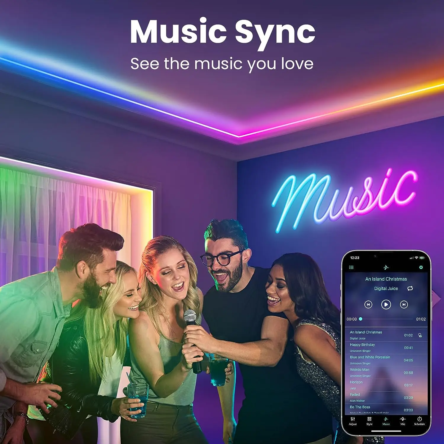 10M/5M/3M Neon WIFI RGB Led Strip Lights Outdoor Waterproof with Music Sync, 108leds/m DIY Tape with Remote and App for Bedroom