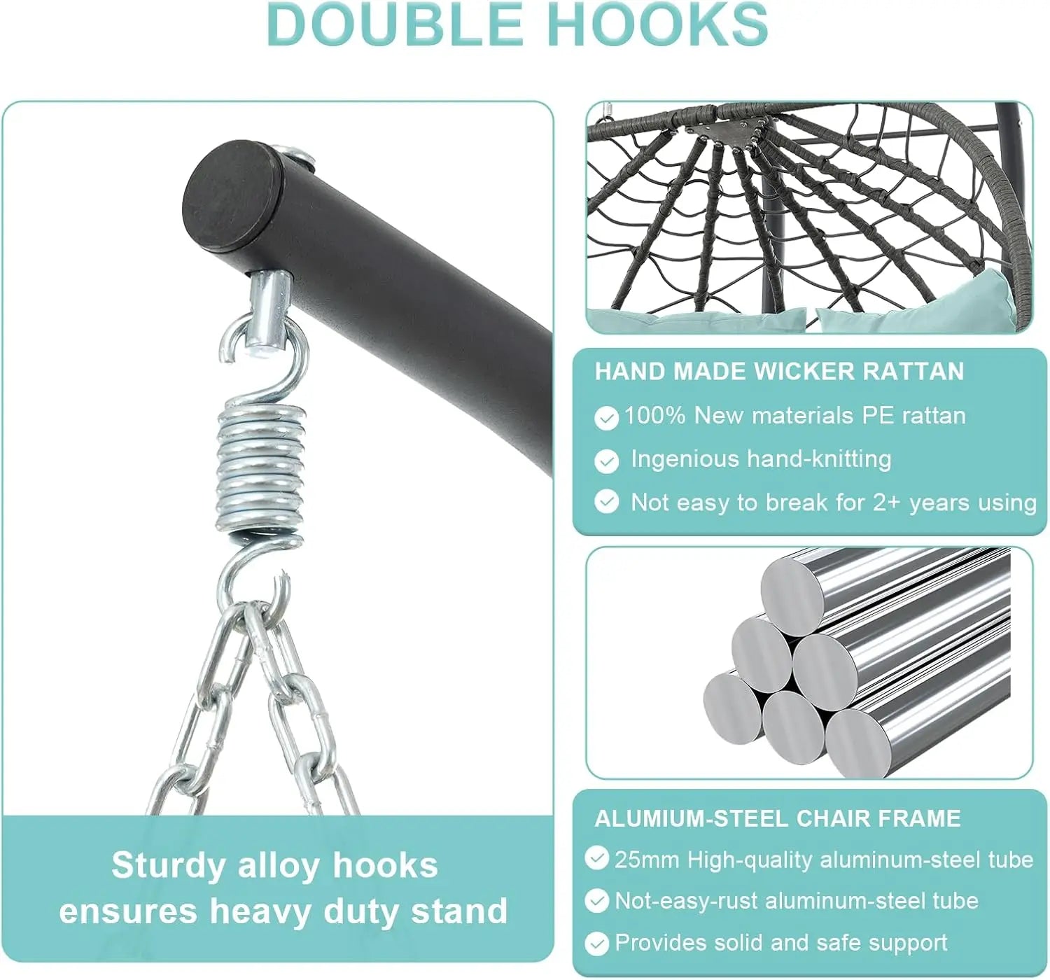 [Sturdy and Durable]: Hanging egg chair with stand's aluminum-steel frame and a sturdy heavy-duty steel stand ensures extend lifetime, and the sturdy stand provides stable support, the chain can hold up to 700 lbs, you can enjoy it for ears.