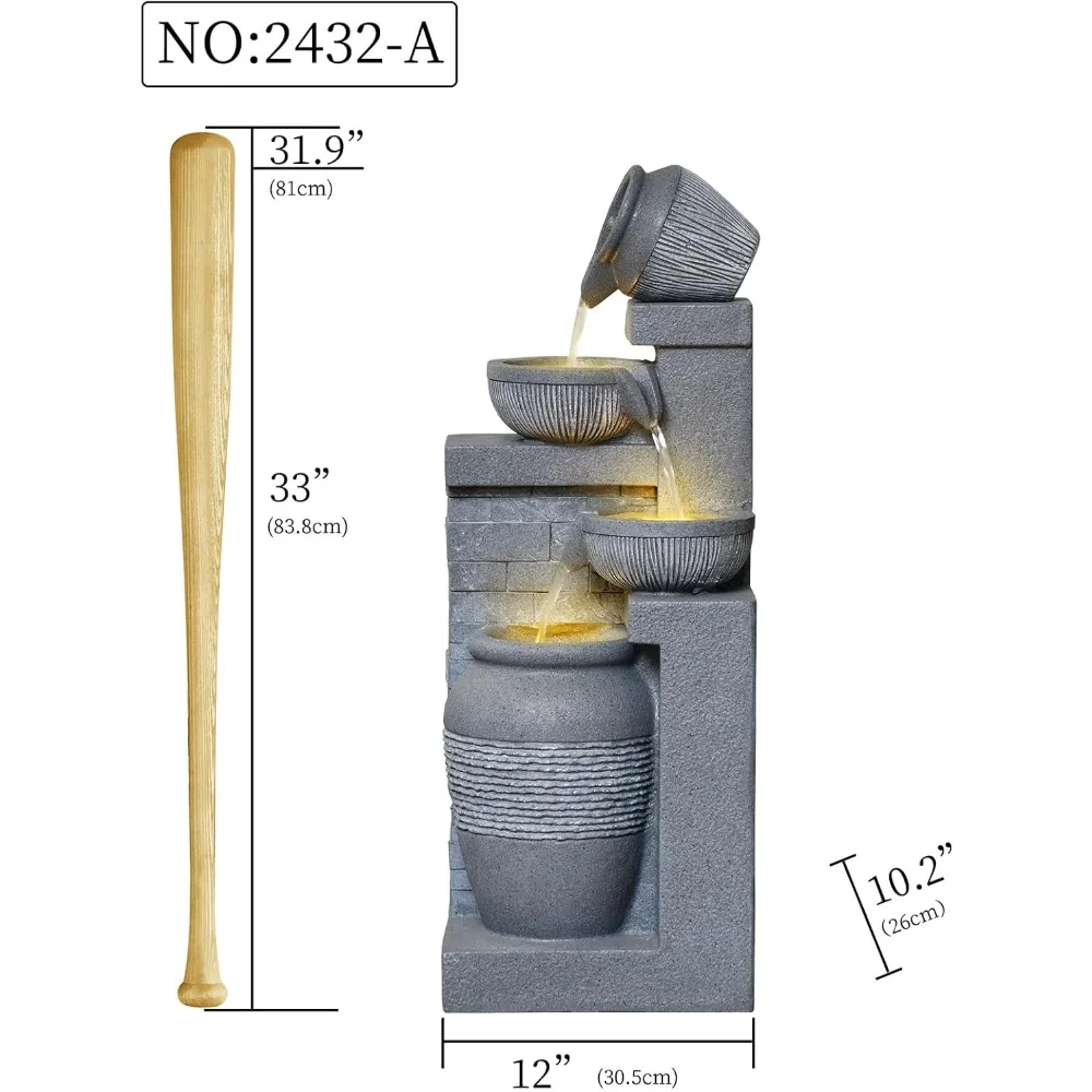 31.89" Outdoor Garden Water Fountain with Lights 4 Tiers Cascading Large Waterfall Floor Standing Fountain for Patio, Backyard,