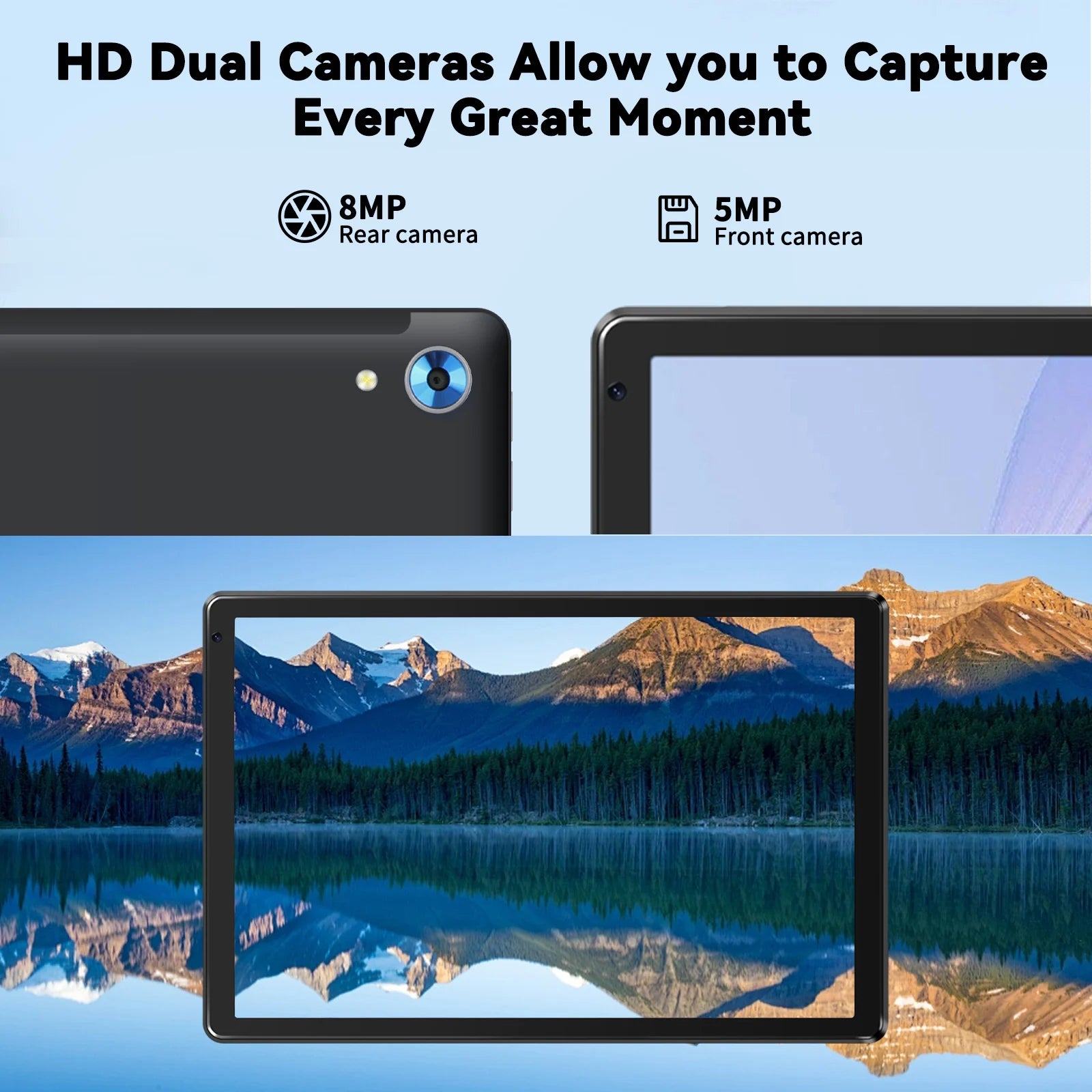 【5000mAh Large Battery】5000mAh large battery with long-lasting battery life, standby up to 10 hours, accompanying you from day to night, allowing you to read, browse the web, watch videos and listen to music easily at home, while traveling or on business trips, and can be charged easily via USB Type-C port. The home tablet supports 2.4G dual-band WiFi, with faster transmission speed and more stable connection.