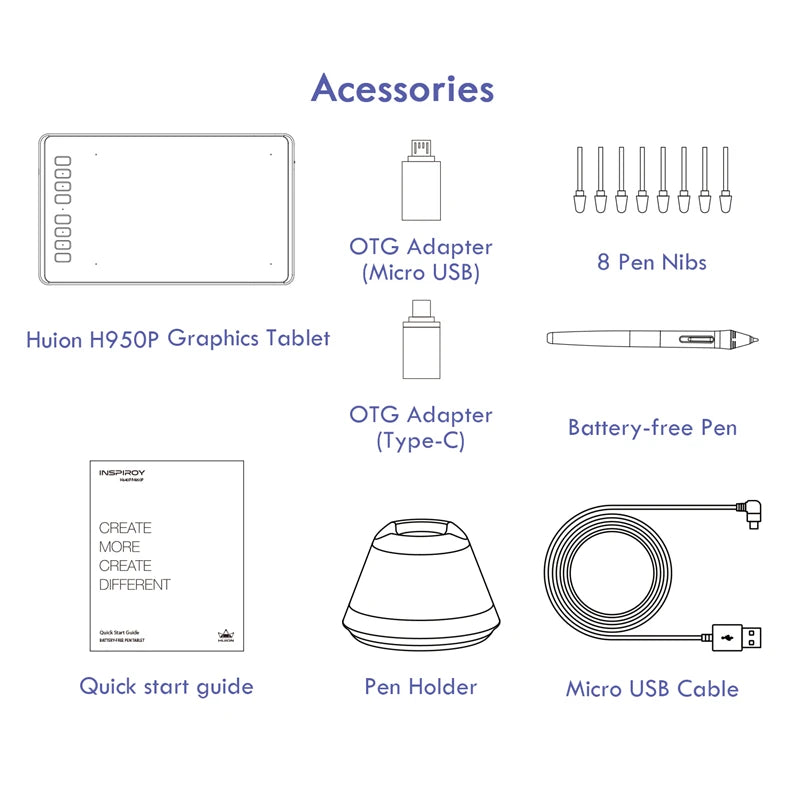 HUION H950P Ultrathin Graphic Tablet Digital Tablets Professional Drawing Pen Tablet with Battery-Free Stylus