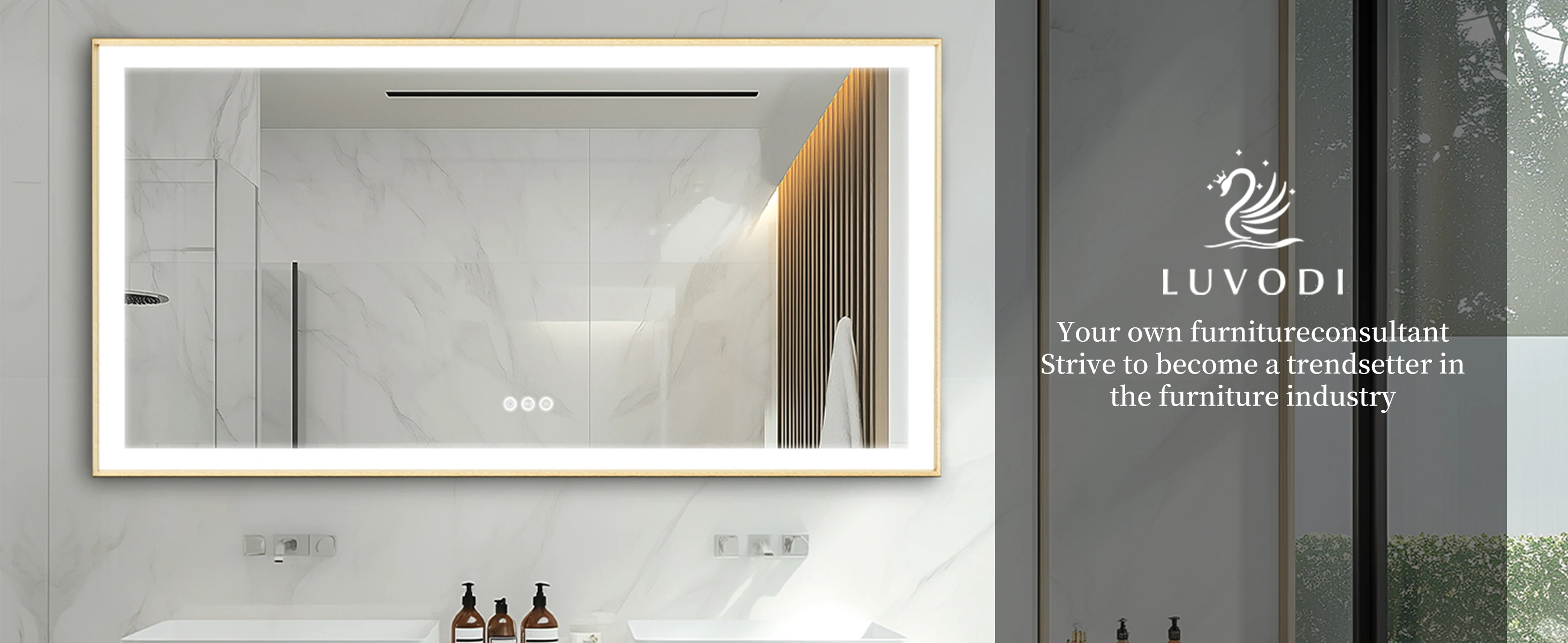 【Innovatives Design】LUVODI Badspiegel mit Beleuchtung kombiniert einen ultradünnen goldfarbenen Aluminiumrahmen (1 cm) mit elegantem, rahmenlosem mattiertem Glas, das bis zum Rand reicht. Diese innovative Technik sorgt für gleichmäßige Beleuchtung und verhindert Lichtstreuungen. Robust, korrosionsbeständig und leicht zu reinigen. Schafft eine perfekte Balance zwischen Design und Funktionalität