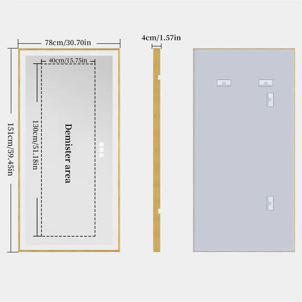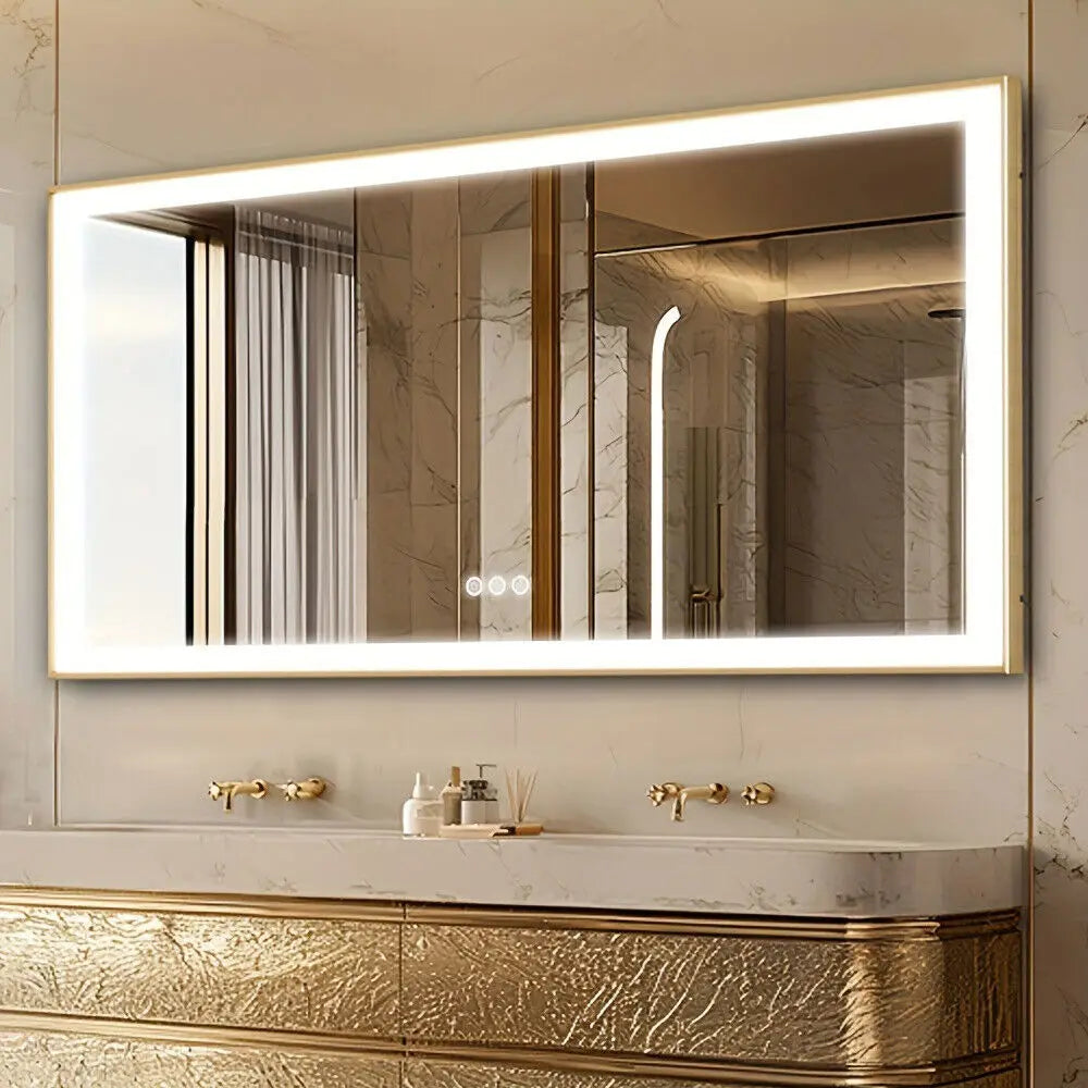 Large LED Bathroom Mirror Rectangular Wall Vanity Mirror with Colour Illuminated Dimmable Antifog Golden Frame IP56 Rated 1400mm
