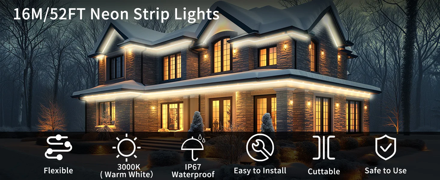Neon LED Strip 3000K 6500K 8m 16m 24V 120leds/m Flexible Silicone LED Strip Dimmable Waterproof LED Strip For Outdoor Lights