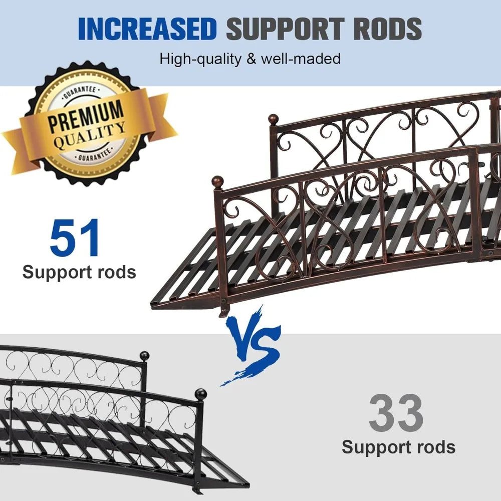 Add charm and functionality to your garden or pathway with this beautifully designed metal garden bridge. Featuring heart-shaped side rail patterns, it brings a romantic and elegant touch to any outdoor space while providing a safe crossing.