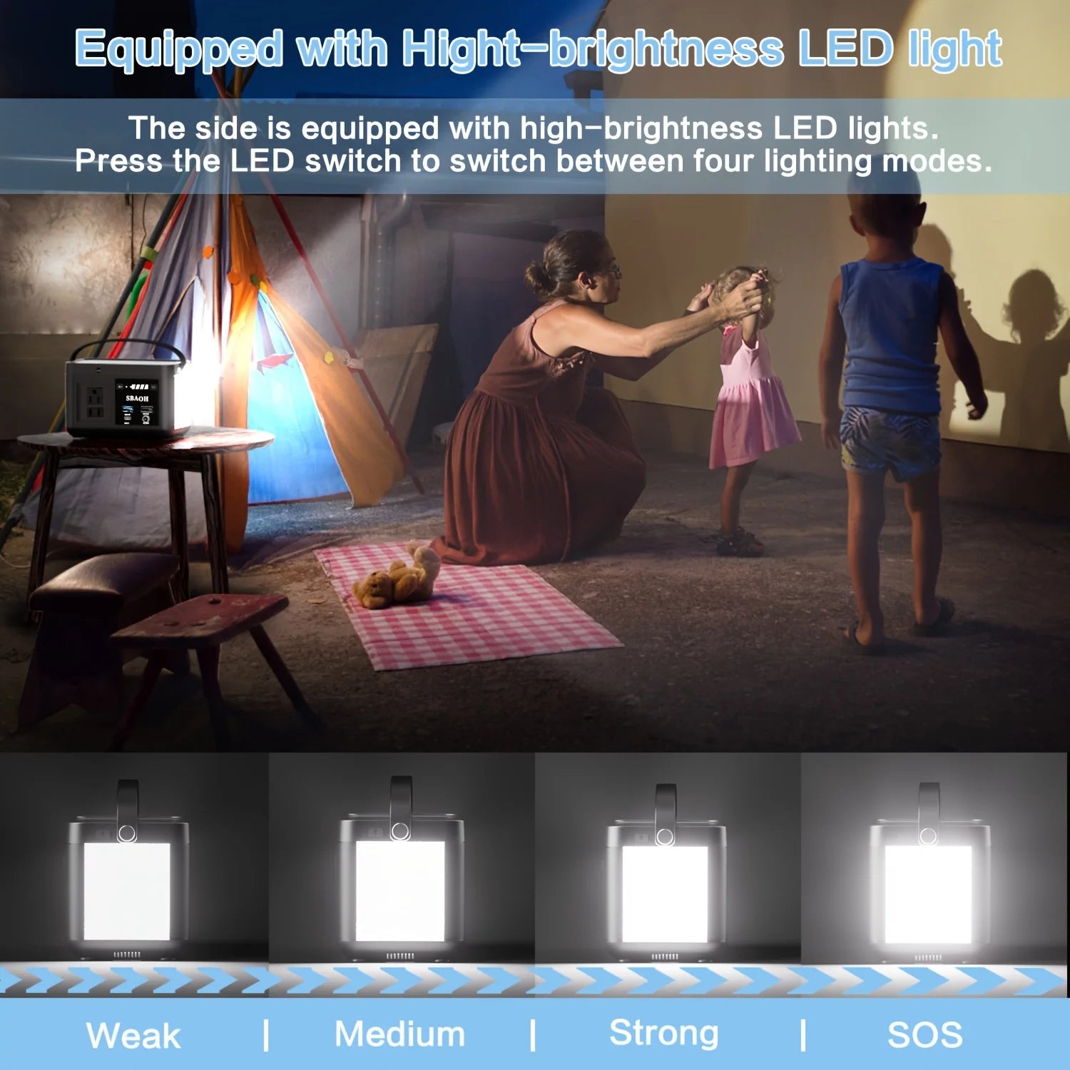 ✅【Ultra bright LED】: the ultra-bright LED light of the portable power station has 2 lighting modes, constant, sparkling or SOS mode. There are also 3 brightness levels.