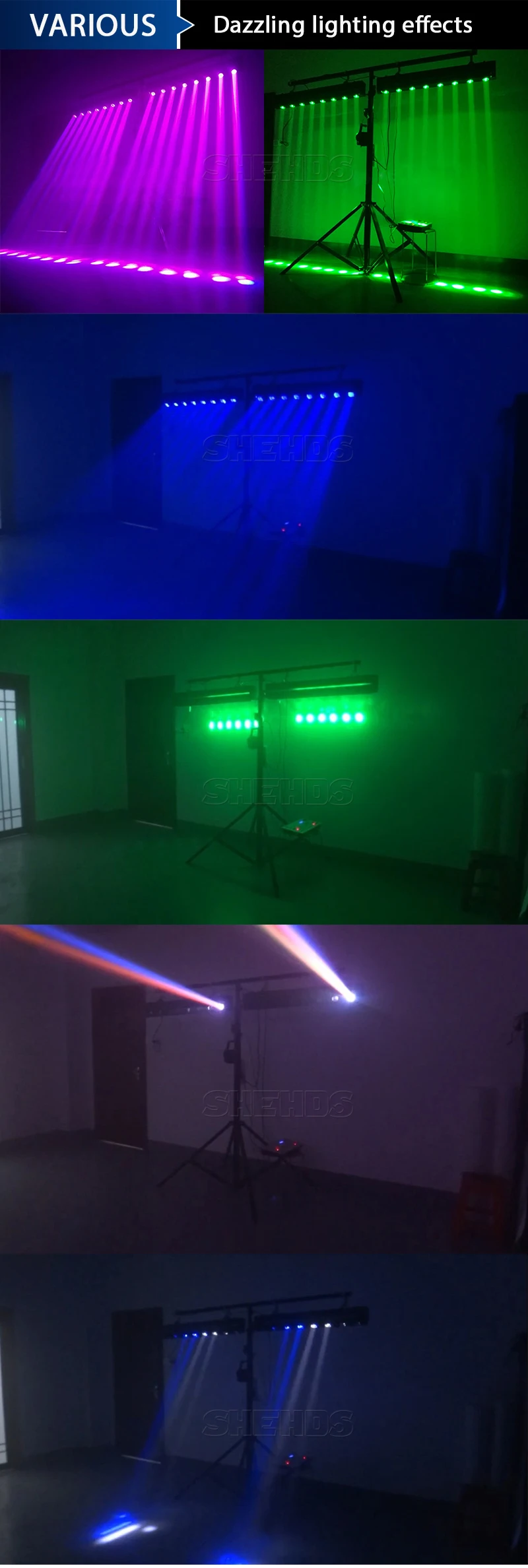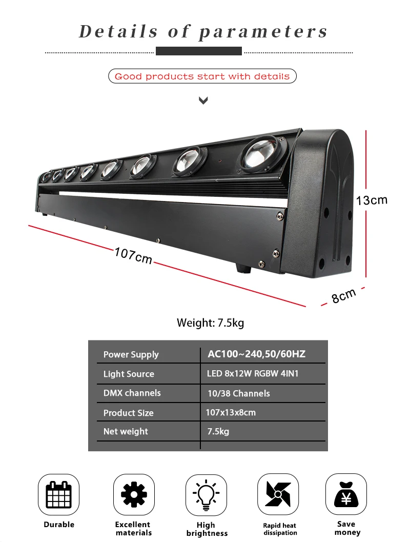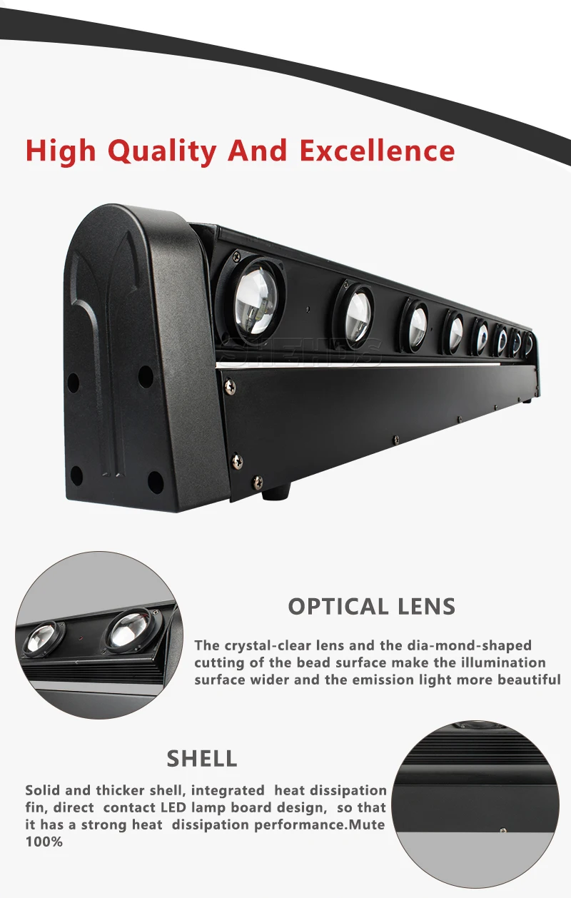●Light Source: 8x12W RGBW 4IN1 LED(Red,Green,Blue,White and mixed color)