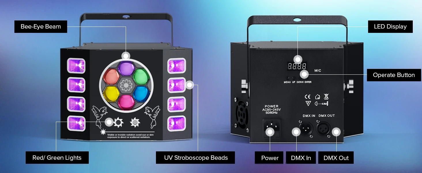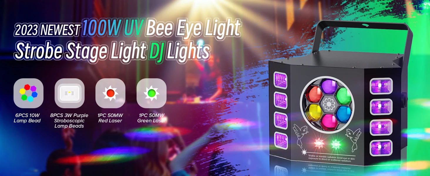 U'King Dj Lights With Remote Control 100W Bee Eye Light UV Strobe Stage Light DMX512 Sound Activated Rave Light For Disco Party