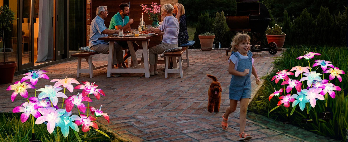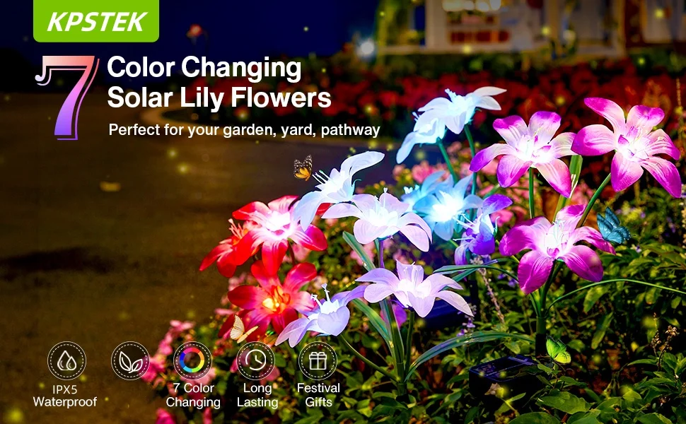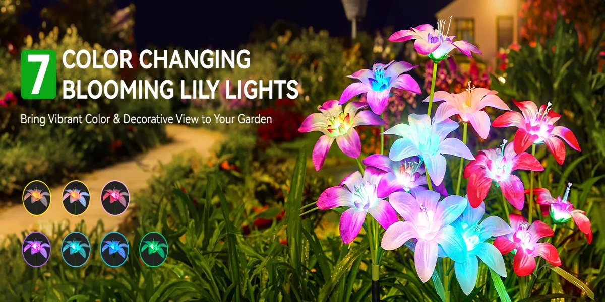 Upgraded Solar Lights 4-Pack | 24 RGB Blooming Lily + 7-Color Flower Lights | Yard/Patio Decor Gift