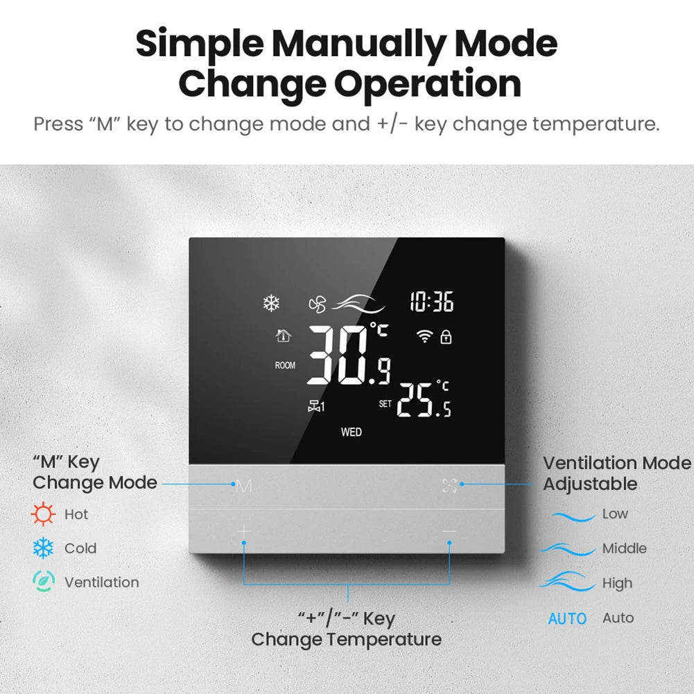 WiFi Smart Central Air Conditioner Thermostat 2 4 Pipe Smart Air Conditioning Panel Voice Tuya Temperature Controller for Alexa