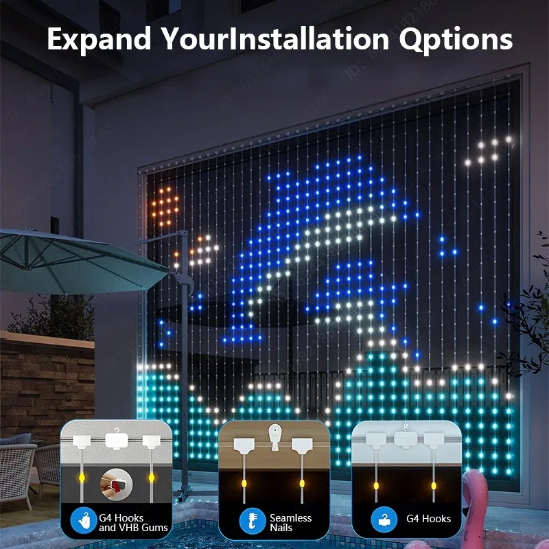 Customizable Editing: Through the "Hello Fairy" app, you can create interesting text, patterns, dynamic backgrounds on the curtain lights, adding a finishing touch to your space and making it the centerpiece of any party.