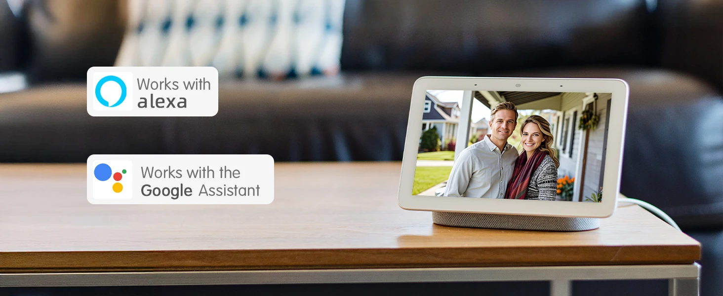 Get notified wherever you are with a wireless chime and instant push notification. Compatible with Alexa and Google Assistant for voice control