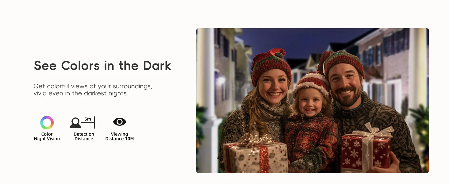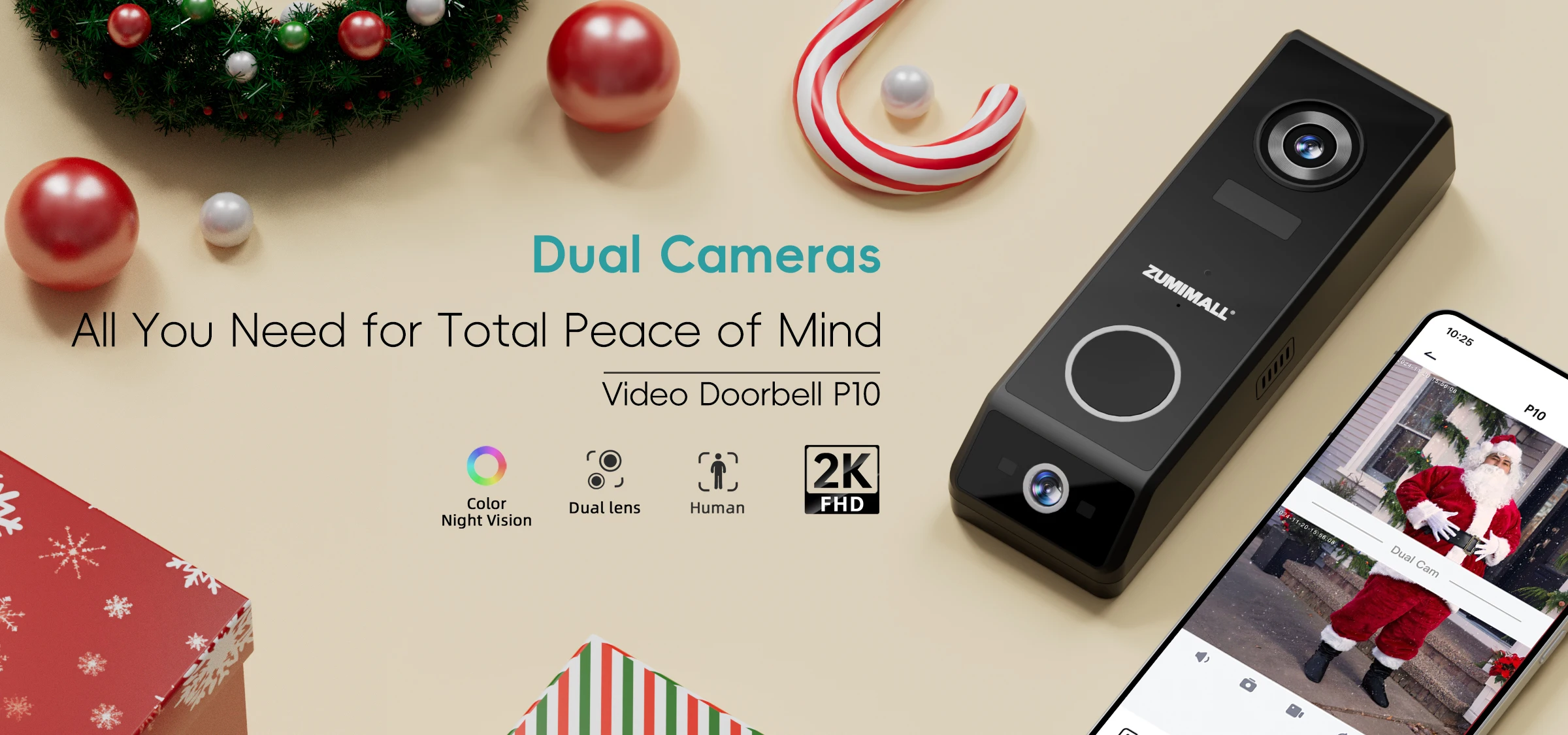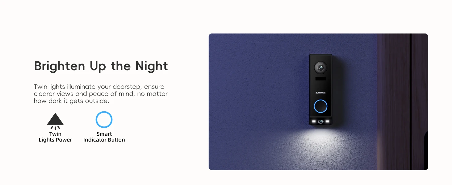 Day or night, get vivid 2K video clarity. With dual-light system, the wireless video doorbell enhances vision up to 10m, so you never miss a detail in any lighting